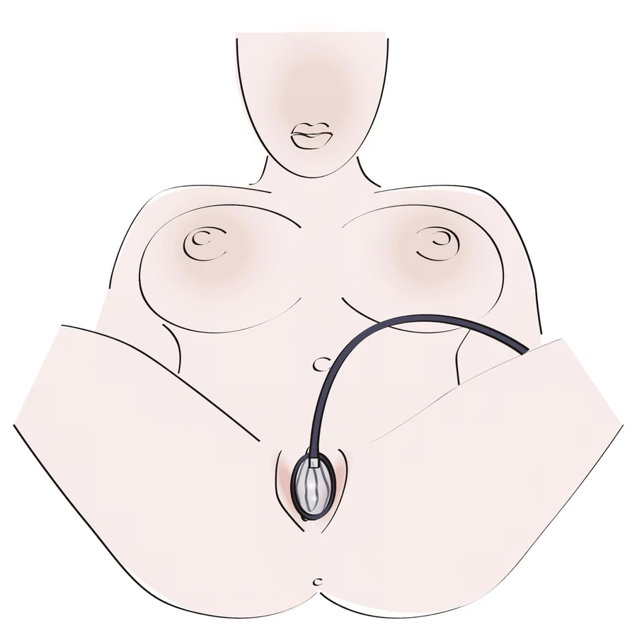 - Helyezd az anatómiailag formázott harangot a vaginára úgy, hogy az teljesen lefedje a szeméremajkakat.