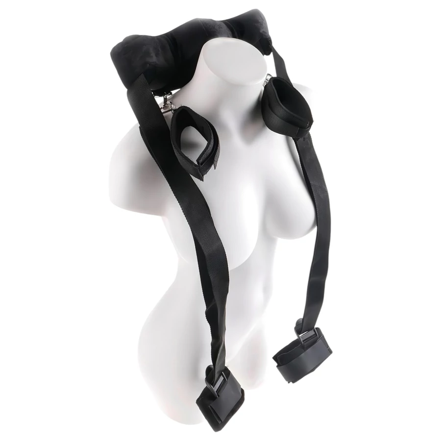 Bújtasd a lábaid a bokarögzítőkbe, kezeid pedig a bilincsekbe, majd kérd meg partnered, hogy rögzítse végtagjaidat. A kulcs a nyaktámasz elhelyezése, mely a nyakad mögé és eléd is kerülhet. Pozíciótippeket a képek között és a csomagoláson találsz.