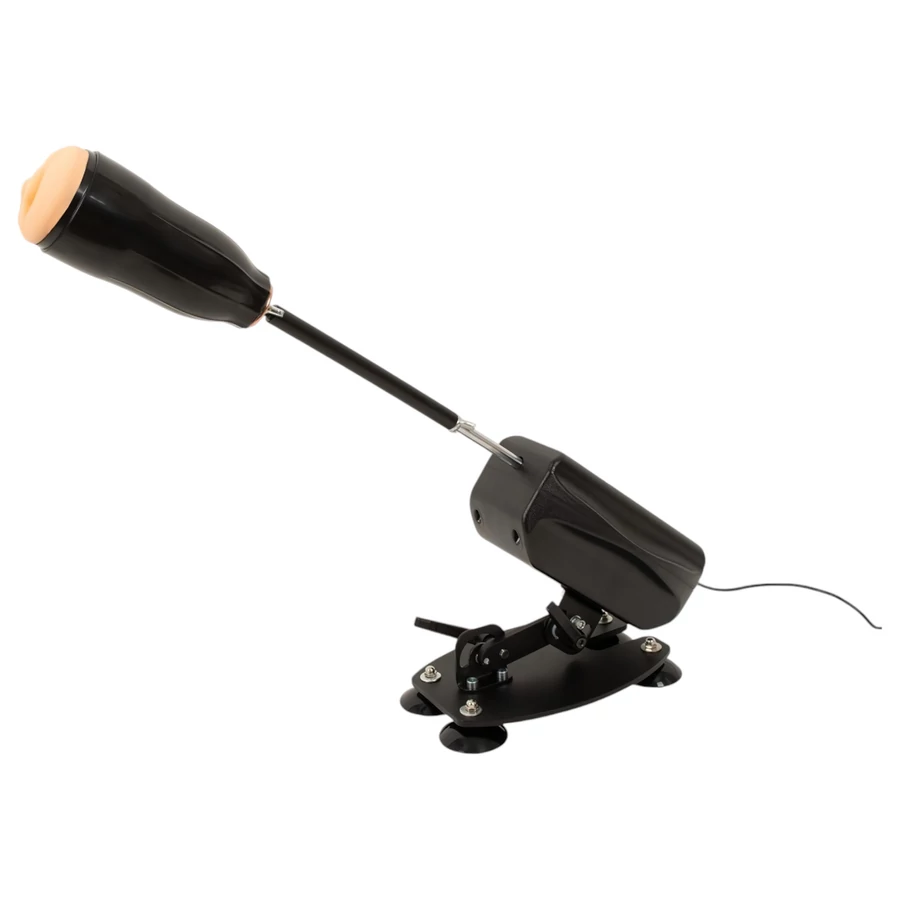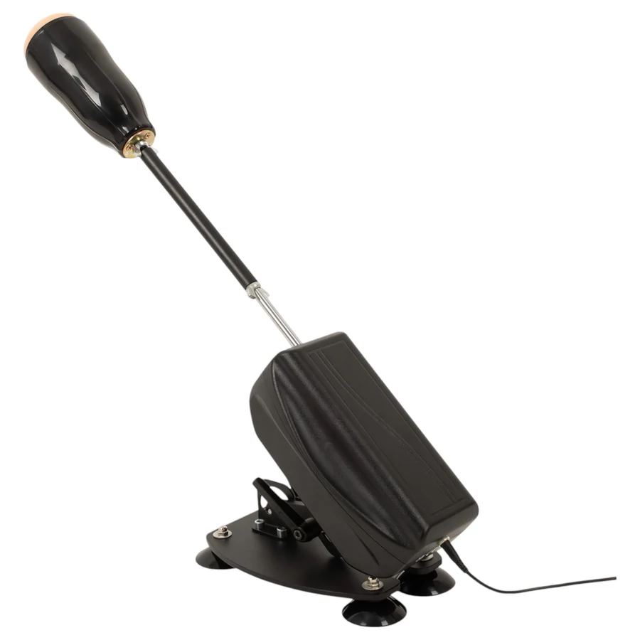 - Szereld össze a gépet a képes használati útmutatónak megfelelően, majd illeszd (menetes talppal) a dildók egyikét vagy a műpuncit a rúdra.