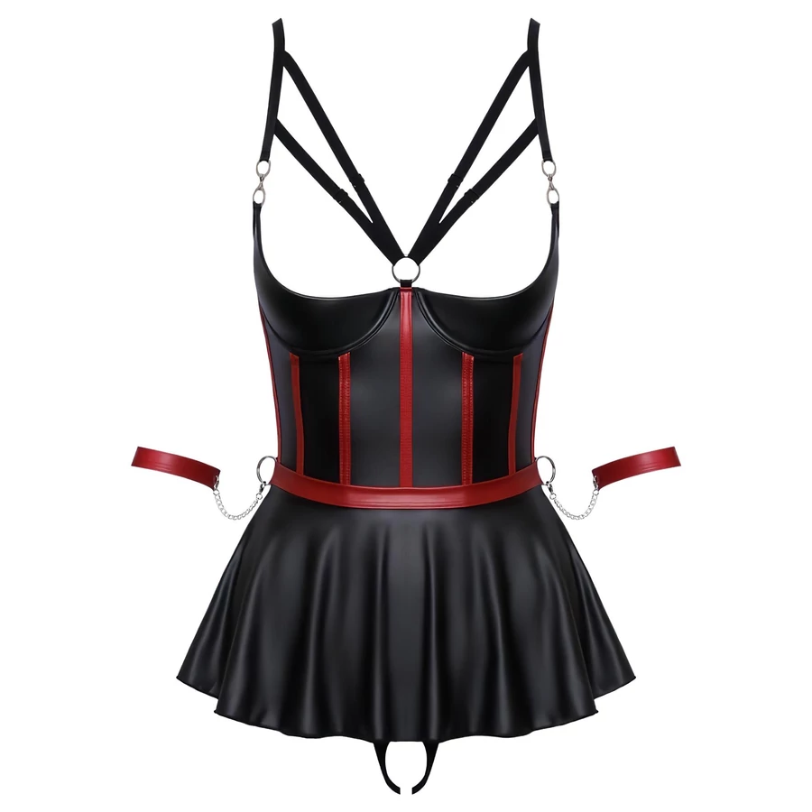 - Hozzá tartozó apró tangával, melynek szeméremrésze teljesen nyitott, szex közben is viselhető