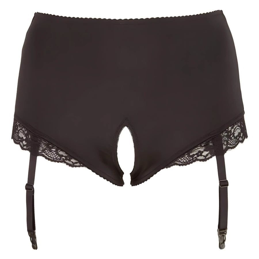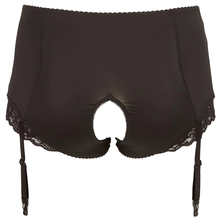 Cottelli Plus Size - harisnyatartós nyitott bugyi (fekete)