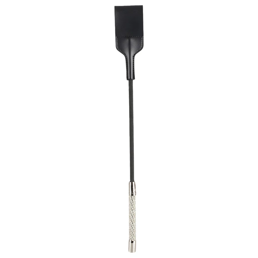 Igazán erős, csípős, dupla rétegű bőrből készült, véggel ellátott paskoló, melynek a nyele körben végig, fehér, csillogó strassz kövekkel van kirakva, akár egy gyönyörű ékszer.