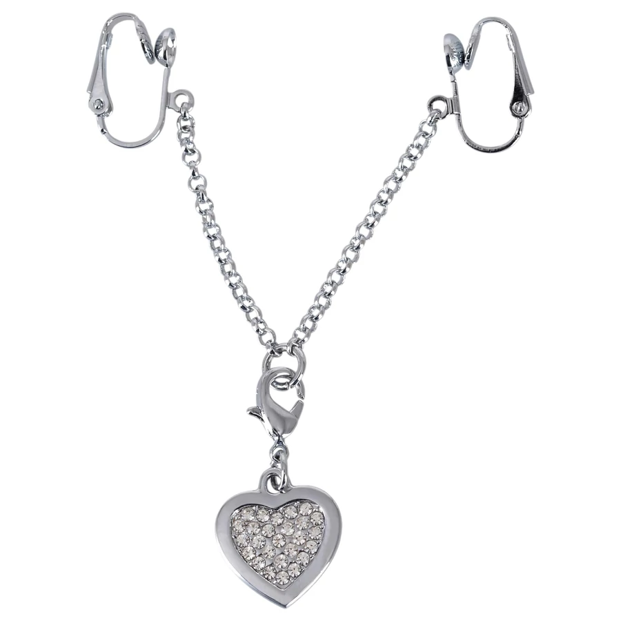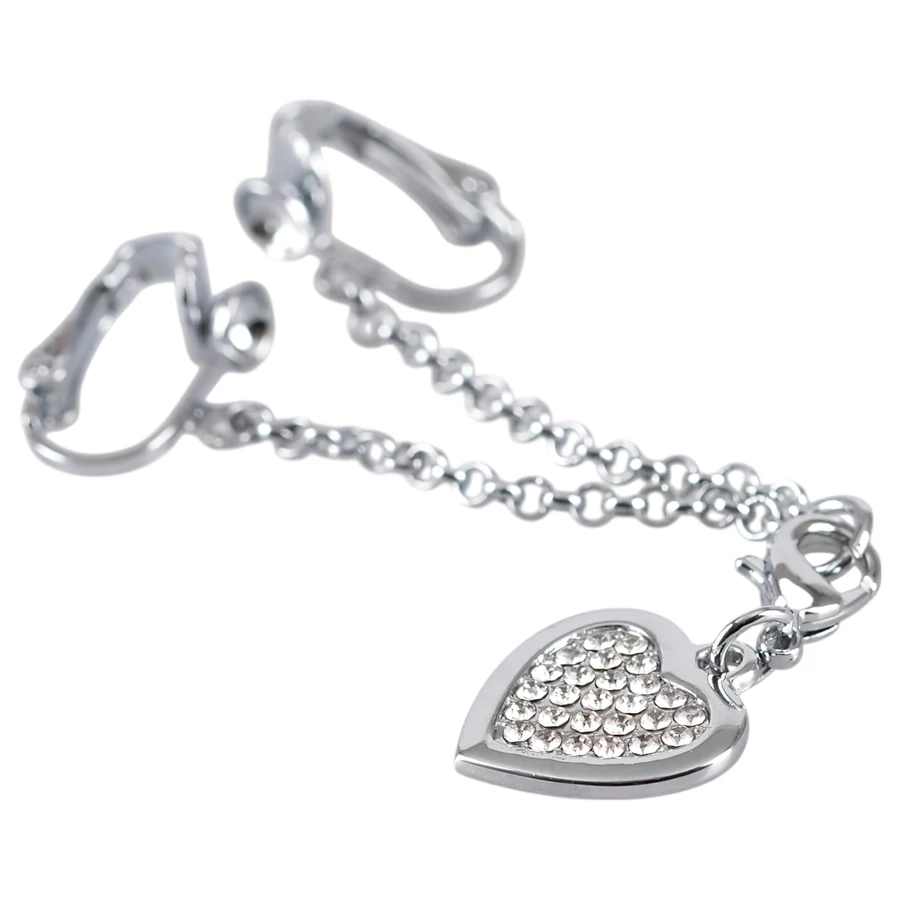 - 1 darab ezüst színű szív medál apró, csillogó fehér strasszkövekkel díszítve