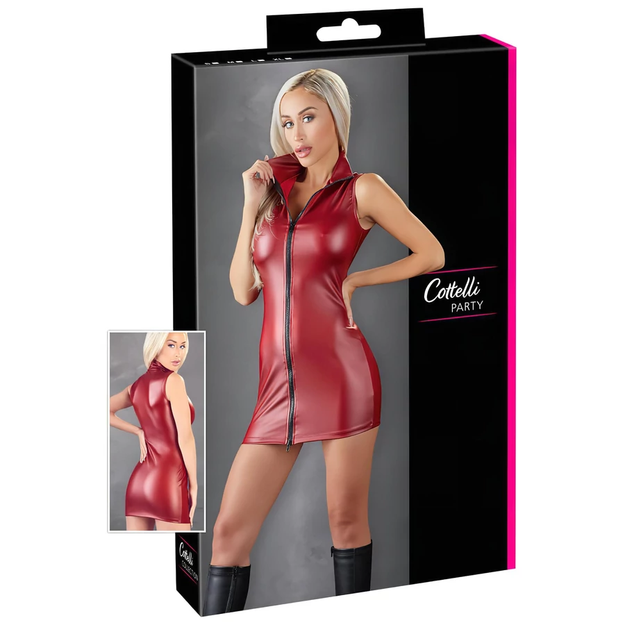 Cottelli Party - cipzáras, ujjatlan fényes miniruha (piros)