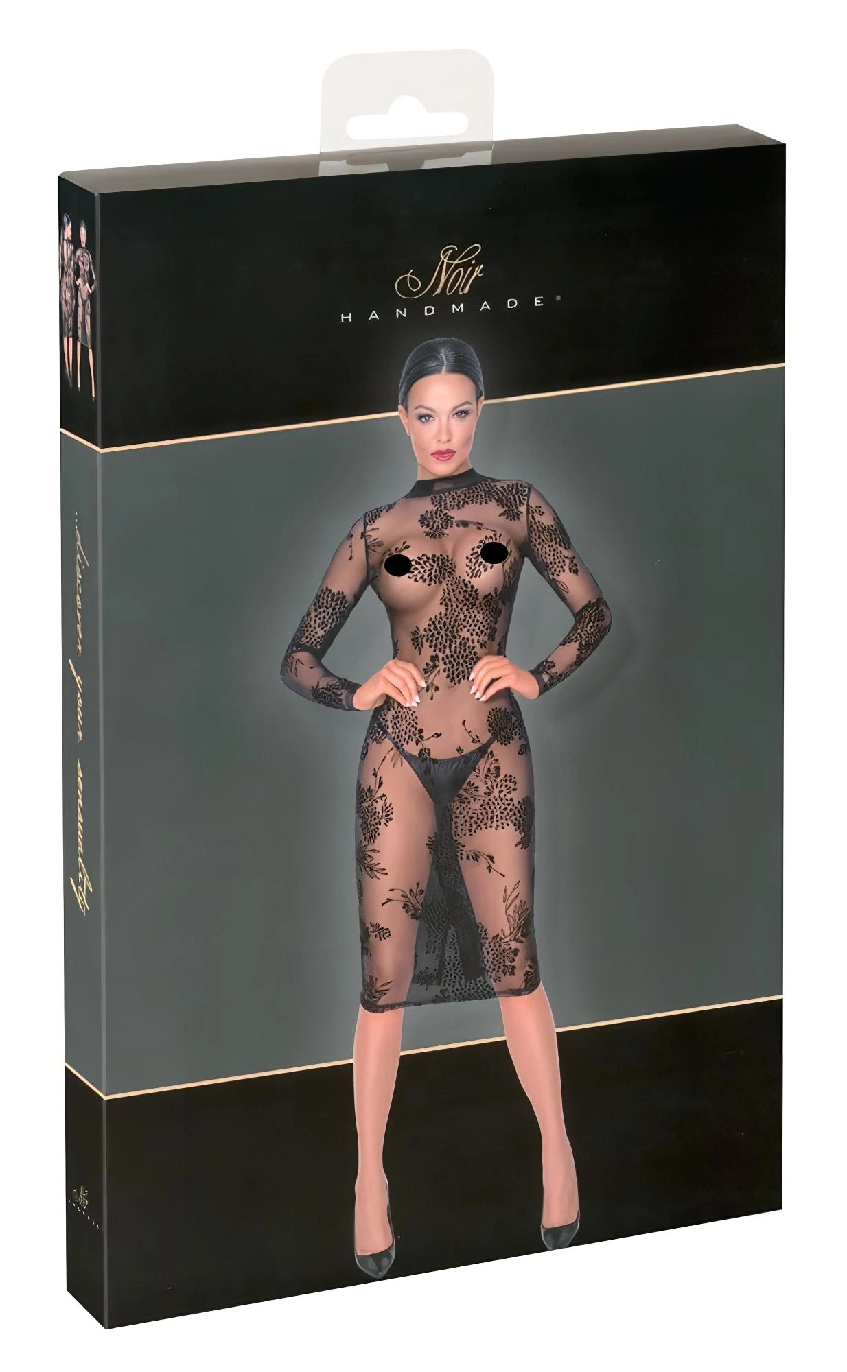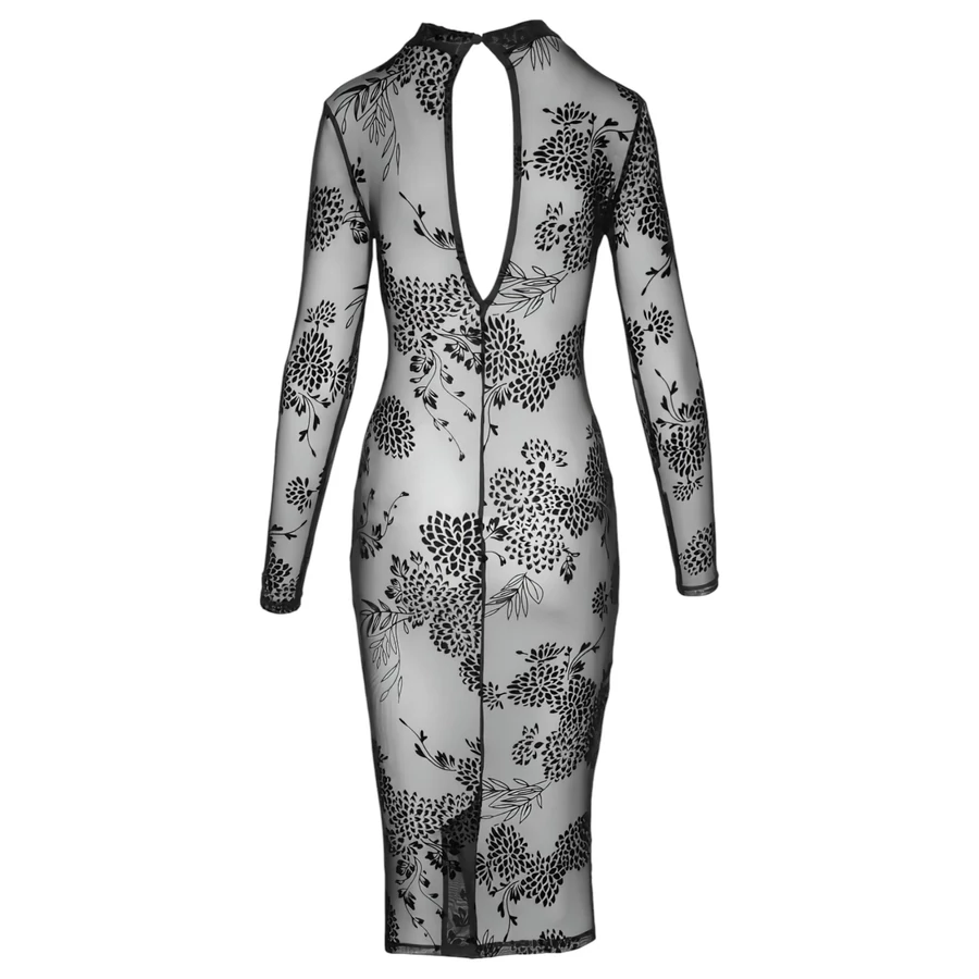 Noir - átlátszó, virágos, hosszúujjú ruha (fekete)