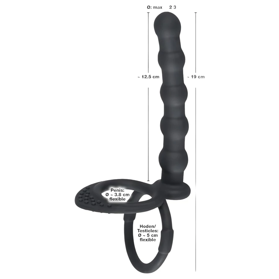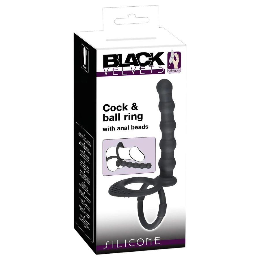 Black Velvets - here- és péniszgyűrű anál dildóval (fekete)