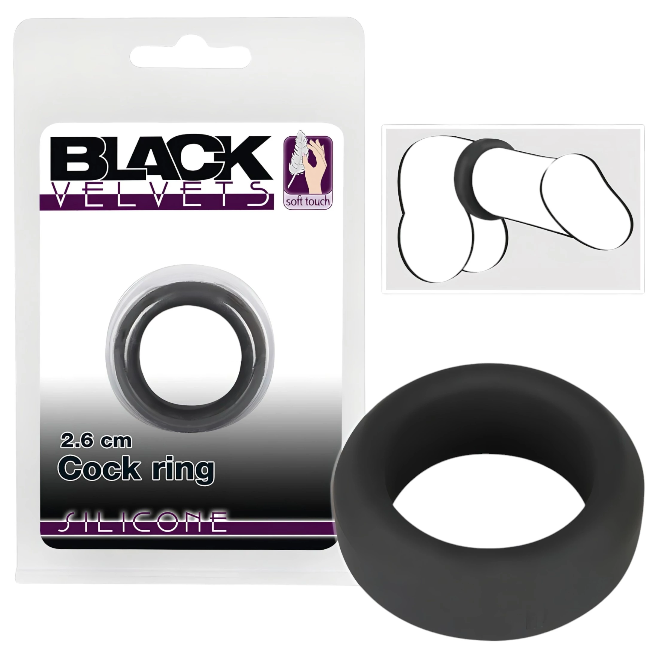 Black Velvets - vastagfalú péniszgyűrű (2,6cm) - fekete