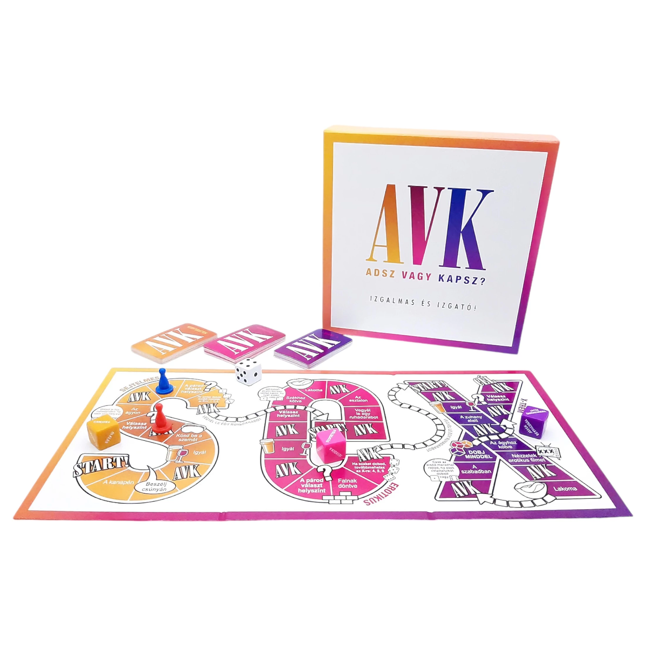 Az AVK: Adsz vagy kapsz egy felnőtt társasjáték, amelyet elsősorban pároknak ajánlunk. Olyanoknak, akik szeretnék feldobni a hálószobai hangulatot, közelebb kerülni egymáshoz, vagy egyszerűen csak egy izgalmas estére vágynak. A játék segít felfedezni egymás vágyait és határait játékos formában.