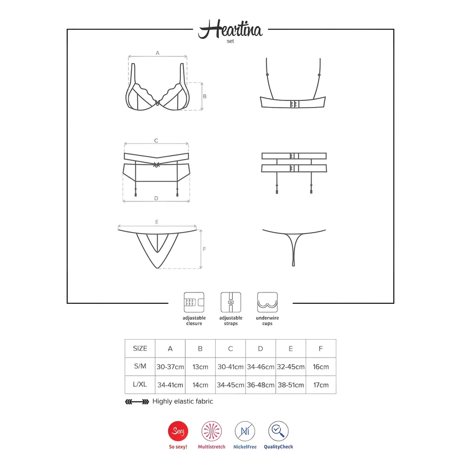 - 1 db csipkés harisnyatartó különleges szabásvonallal és strasszos szív dísszel