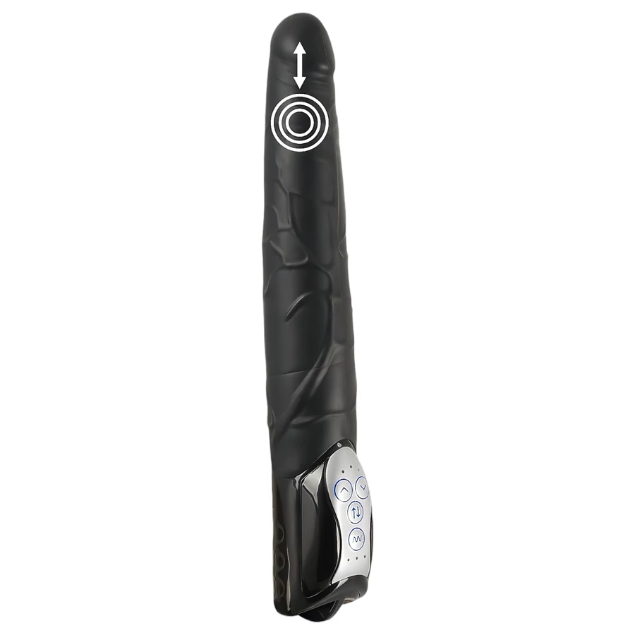3 fokozatú ki-be mozgó, lökő funkcióval és vibrációval kényeztető rugalmas anyagú műpénisz, impozáns hosszal!